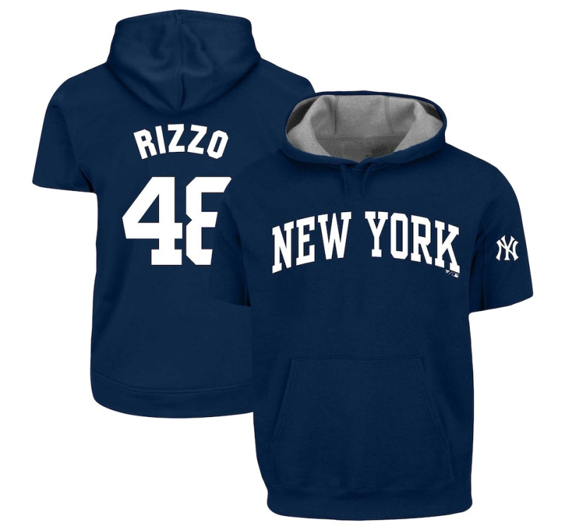 Highlight a true New York Yankees icon in style this season with this Anthony Rizzo short sleeve hoodie from Profile. The instantly recognizable New York Yankees graphics printed across the chest will ensure your die-hard loyalty will never falter. The short sleeve construction provides a unique twist when it comes to your outerwear while the fleece lining ensures comfort and softness with every wear.