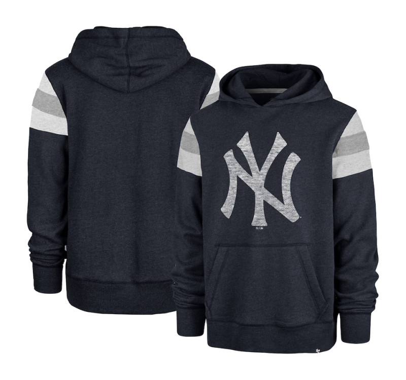 Enhance your rotation of official New York Yankees gear with this Premier Nico pullover hoodie from '47. It features distressed team graphics on the front and contrast-color stripes on both shoulders, which work together to give you a look that is full of team spirit. The fleece lining is sure to keep you warm and cozy while you cheer on your favorite New York Yankees players.