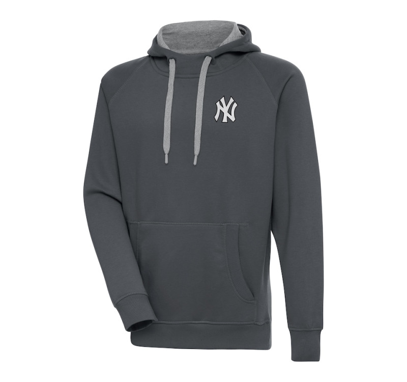 Adult Men's New York Yankees Antigua Metallic Victory Pullover baseball Hoodie - Charcoal
