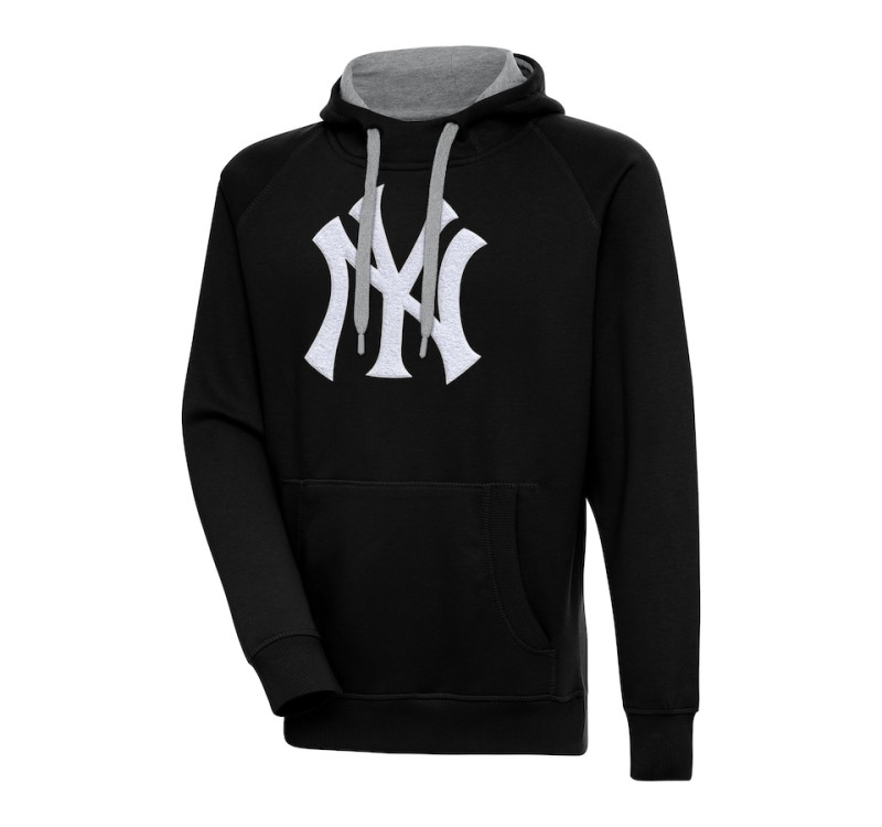 Adult Men's New York Yankees Antigua Victory Chenille Pullover baseball Hoodie - Black