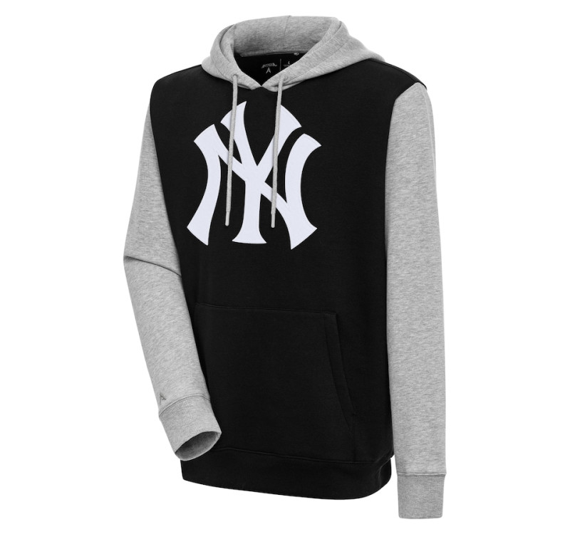 Adult Men's New York Yankees Antigua Victory Colorblock Pullover baseball Hoodie - Black/Heather Gray