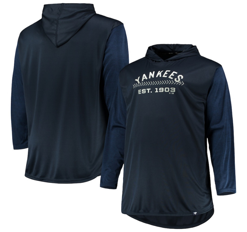 Adult Men's New York Yankees Big & Tall Wordmark Club Pullover baseball Hoodie - Navy/Heathered Navy