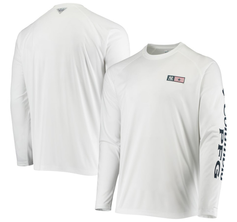 Adult Men's New York Yankees Columbia Americana Terminal Tackle Omni-Shade Raglan Long Sleeve baseball T-shirt - White