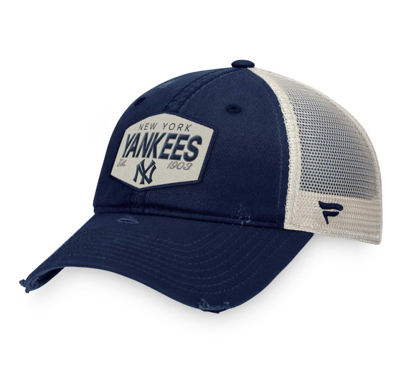 Bring some vintage flavor to your showing of unwavering enthusiasm for the New York Yankees by adding this Patch trucker hat from us to your gear collection. It features a bold New York Yankees applique embroidered on the team-color front panels and distressed fabric that draws attention to your favorites. Mesh panels also provide a breezy feel, while the snap closure makes customizing the fit easy.