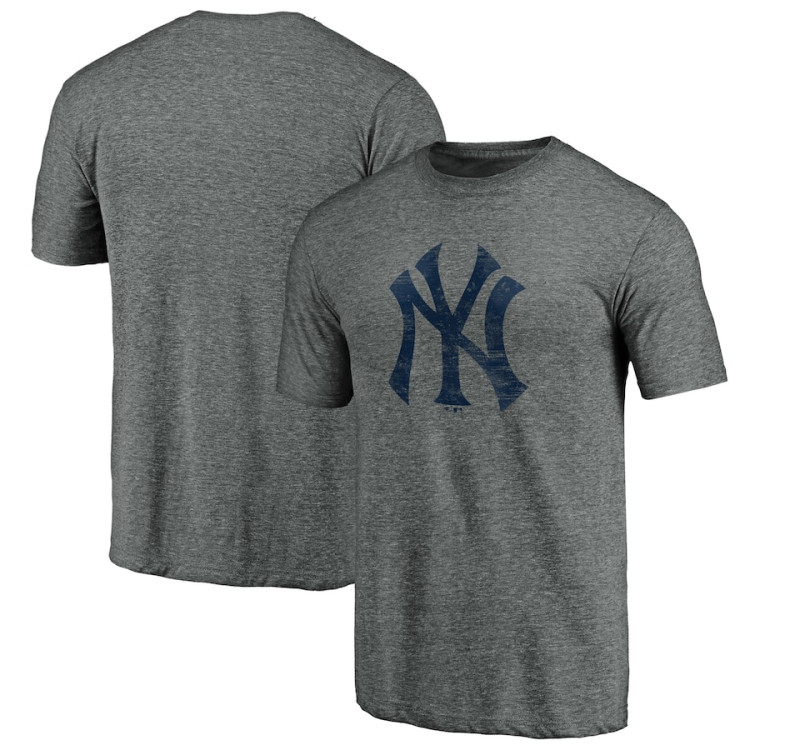 Adult Men's New York Yankees Weathered Official Logo Tri-Blend baseball T-shirt - Heathered Gray