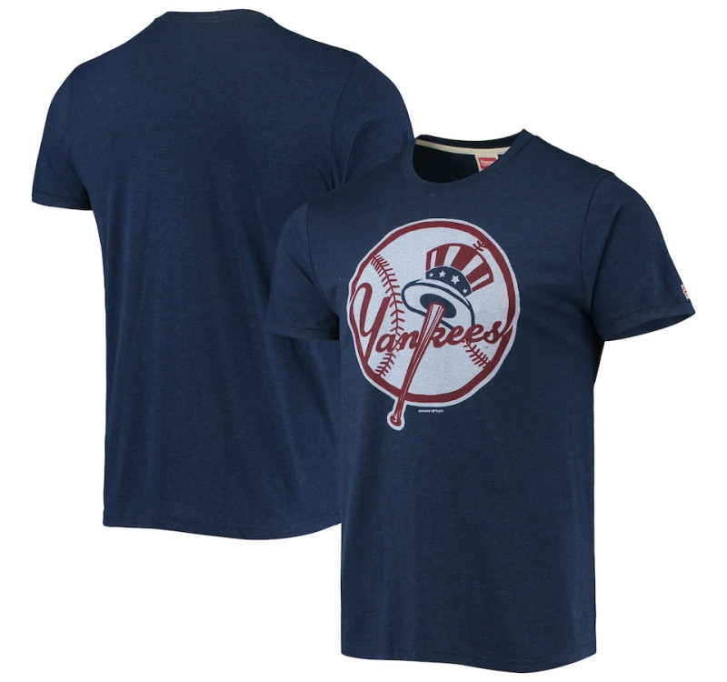 Adult Men's New York Yankees Homage Hand-Drawn Logo Tri-Blend baseball T-shirt - Navy