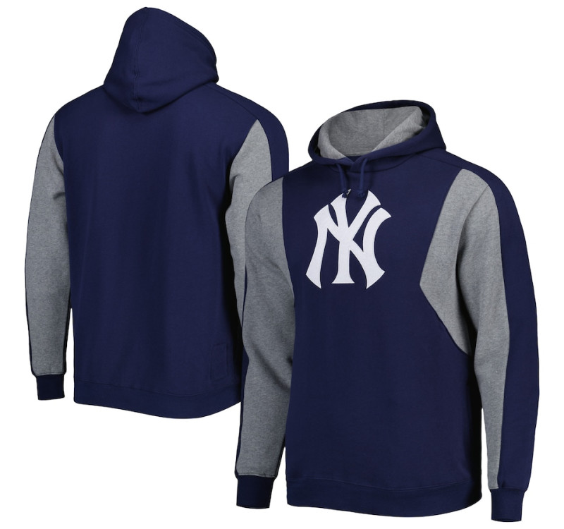 • Adult Men's New York Yankees Mitchell & Ness Colorblocked Fleece Pullover baseball Hoodie - Navy/Gray