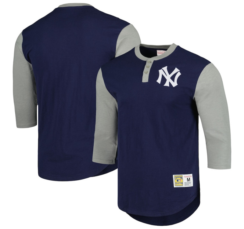 Adult Men's New York Yankees Mitchell & Ness Cooperstown Collection Legendary Slub Henley 3/4-Sleeve baseball T-shirt - Navy