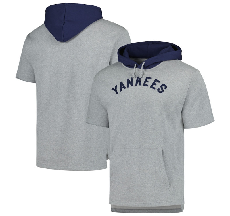 Adult Men's New York Yankees Mitchell & Ness Postgame Short Sleeve Pullover baseball Hoodie - Heather Gray