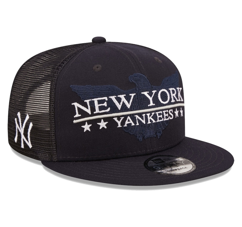 Add a flag-waving finish to any outfit with this New York Yankees Patriot Trucker 9FIFTY hat. This New Era lid features a large embroidered wordmark and team logo on the front along with star-spangled front panels that demonstrate your love for your favorites along with your pride in your country. Plus, the mesh panels offer added breathability, while the snapback design makes for a perfect fit.