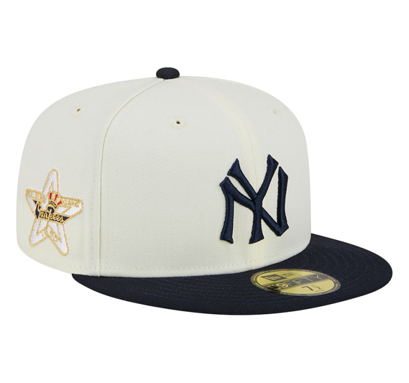 Adult Men's New York Yankees New Era Retro 59FIFTY Fitted Hat - Stone/Navy