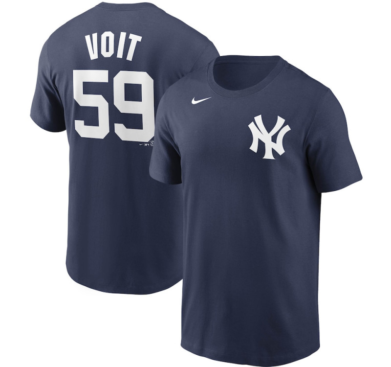 Before steps on the field for the next New York Yankees game, gear up in this Name and Number T-shirt from Nike. Its lightweight cotton fabric is breathable and comfortable, perfect for the midsummer heat of baseball season. The back features printed graphics that highlight your admiration for .