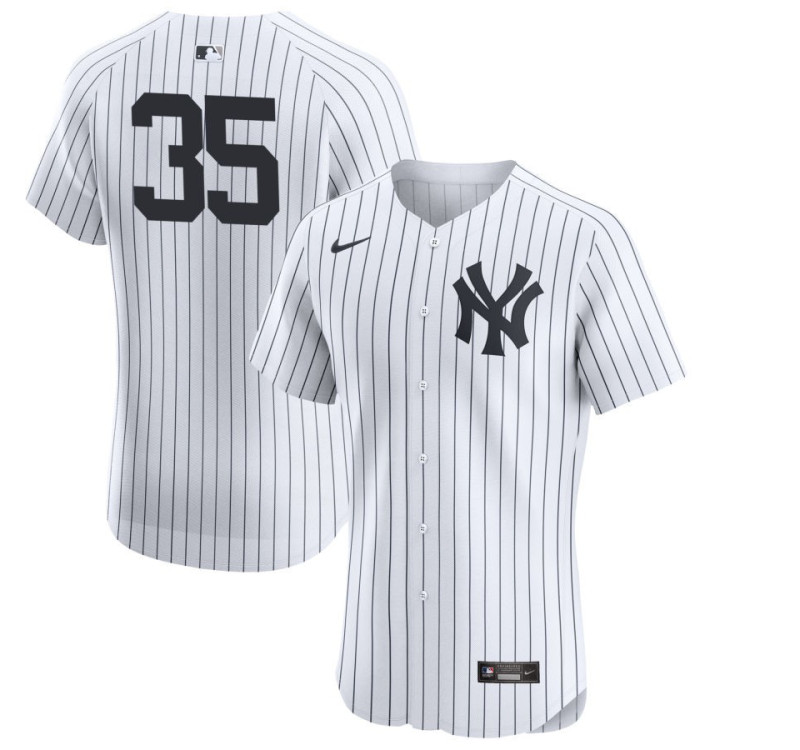Celebrate the pinstripe legacy with this iconic Cody Bellinger #35 New York Yankees Home Men's Jersey - White Elite. The crisp white fabric adorned with classic navy pinstripes perfectly captures the timeless elegance of Yankees tradition. Featuring the legendary interlocking NY logo prominently displayed across the chest, this jersey transforms you into a walking tribute to baseball's most storied franchise. Whether you're cheering in the Bronx bleachers or watching from home, the moisture-wicking fabric keeps you comfortable while the bold team graphics declare your undying loyalty to the 27-time World Champions. This isn't just apparel - it's a badge of honor for true Yankees faithful.