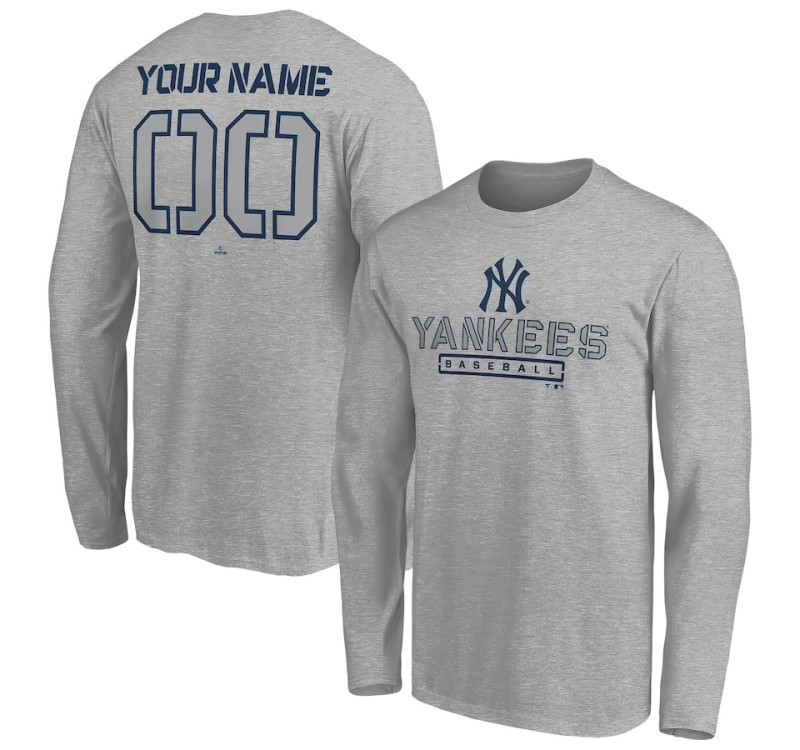 Customize Men's New York Yankees Evanston Stencil Long Sleeve baseball T-shirt - Heather Gray