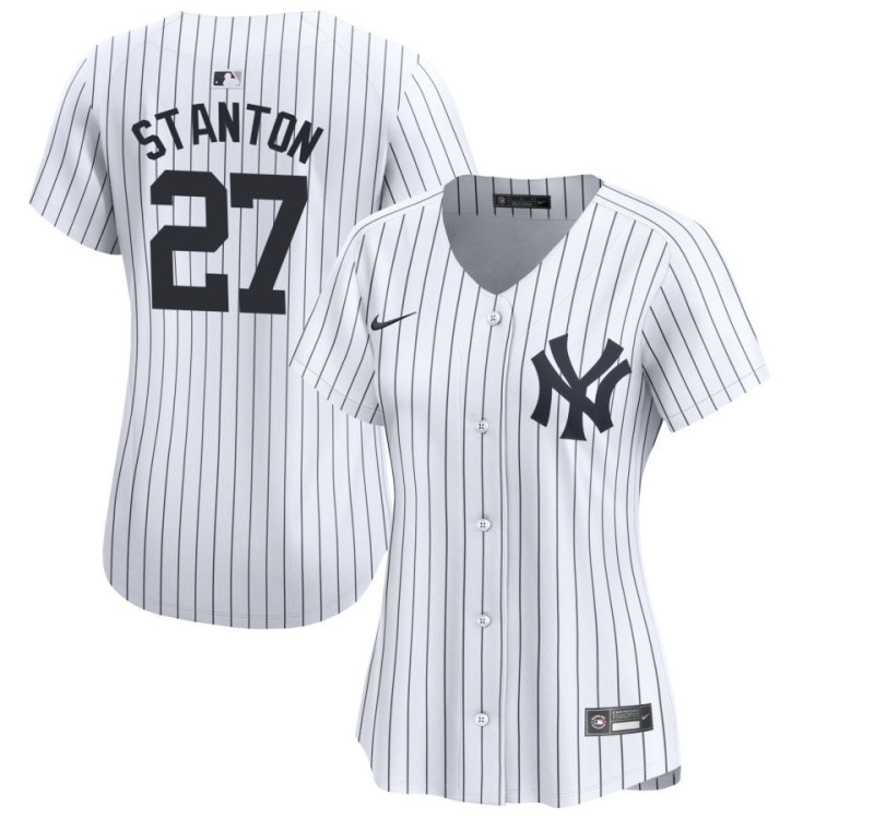 Celebrate the pinstripe legacy with this iconic Giancarlo Stanton #27 New York Yankees Home Women's Jersey - White Limited. The crisp white fabric adorned with classic navy pinstripes perfectly captures the timeless elegance of Yankees tradition. Featuring the legendary interlocking NY logo prominently displayed across the chest, this jersey transforms you into a walking tribute to baseball's most storied franchise. Whether you're cheering in the Bronx bleachers or watching from home, the moisture-wicking fabric keeps you comfortable while the bold team graphics declare your undying loyalty to the 27-time World Champions. This isn't just apparel - it's a badge of honor for true Yankees faithful.