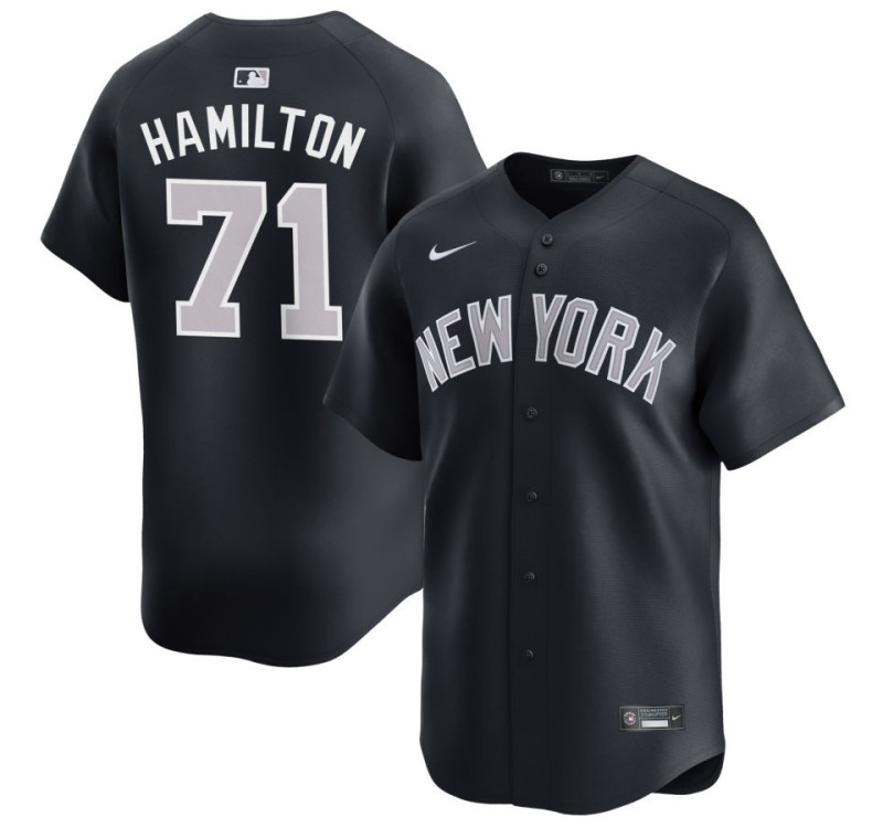 Feel the electric energy of Fenway Park come alive when you wear this iconic Ian Hamilton #71 New York Yankees Alternate Youth Jersey - Navy Limited. Channel the raw power of your favorite slugger as you cheer from the stands - with premium moisture-wicking fabric and official team detailing, you'll not only look like part of the roster but carry the same championship spirit that made Yankees legend. Every stitch radiates New York pride, perfect for turning heads at the ballpark or showing off your team allegiance anywhere.