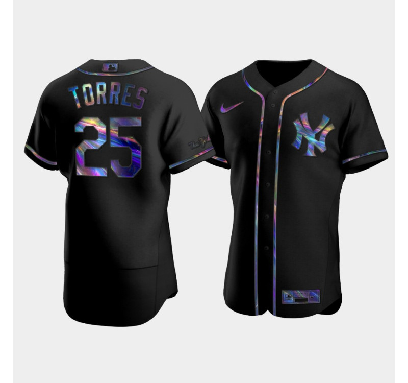 Mens New York Yankees #25 Gleyber Torres Black Authentic Golden Edition Holographic Jersey