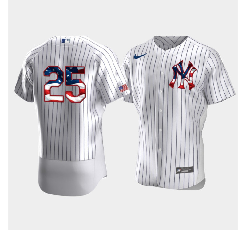 Show the New York Yankees some support with this fresh Mens New York Yankees #25 Gleyber Torres White 4th of July 2020 Stars & Stripes Jersey. It features bold New York Yankees graphics that are perfect for showing your team pride.