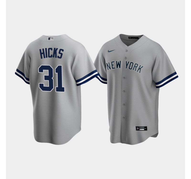 Mens New York Yankees #31 Aaron Hicks Gray Replica Nike Road Jersey