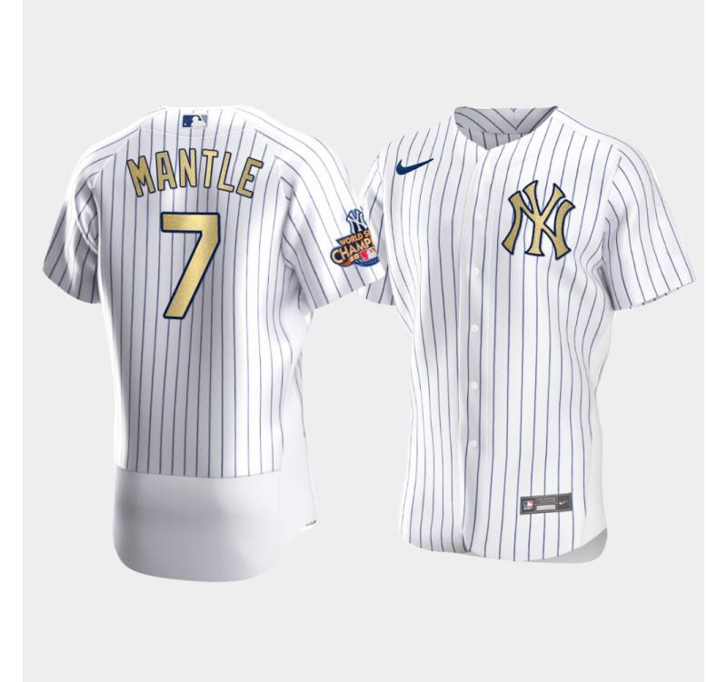 Mens New York Yankees #7 Mickey Mantle White 2009 World Series Champions Nike Jersey