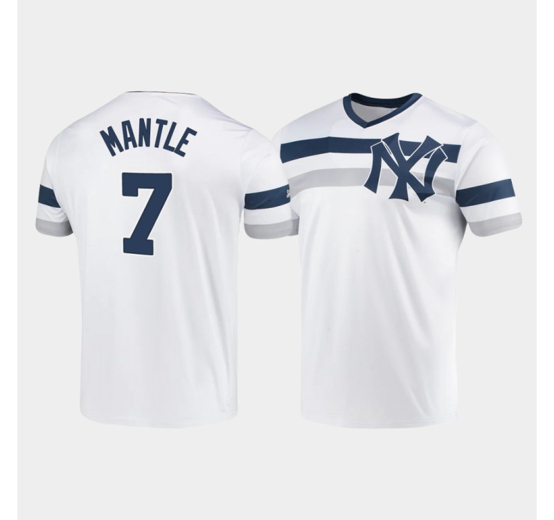 Mens New York Yankees #7 Mickey Mantle White Cooperstown Collection V-Neck Jersey