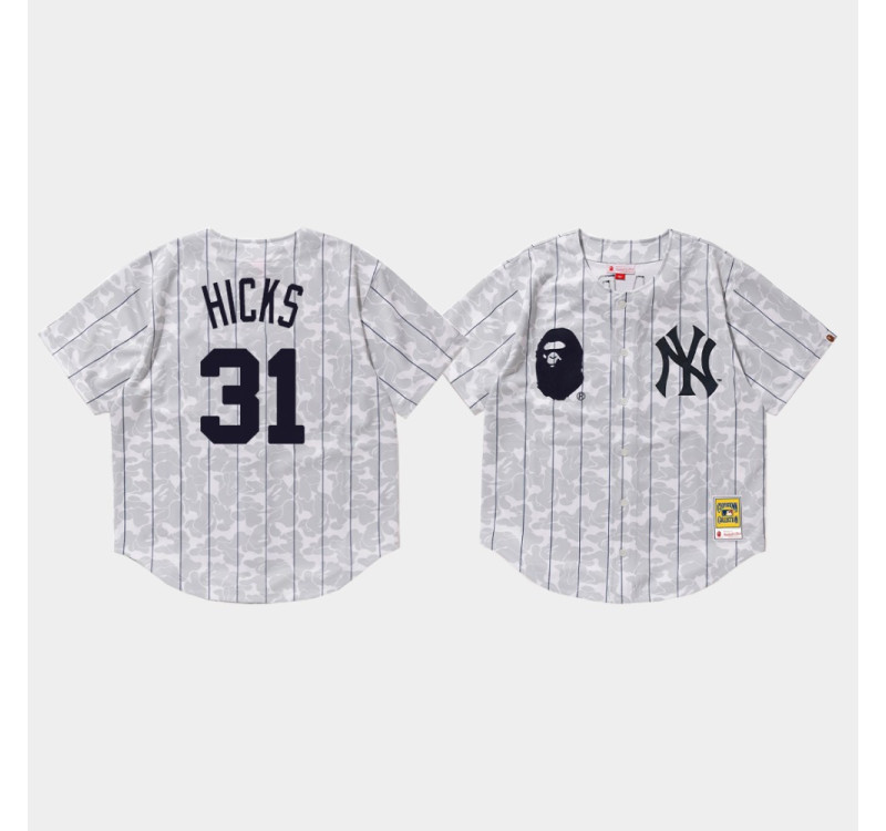 Mens New York Yankees Aaron Hicks #31 White BAPE x Mitchell & Ness Jersey