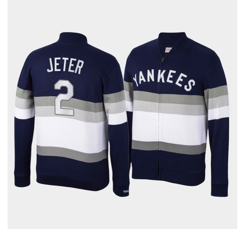 Mens New York Yankees Derek Jeter Navy Front Stripe Mitchell & Ness Full-Zip Sweater