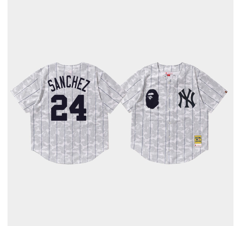 Mens New York Yankees Gary Sanchez #24 White BAPE x Mitchell & Ness Jersey