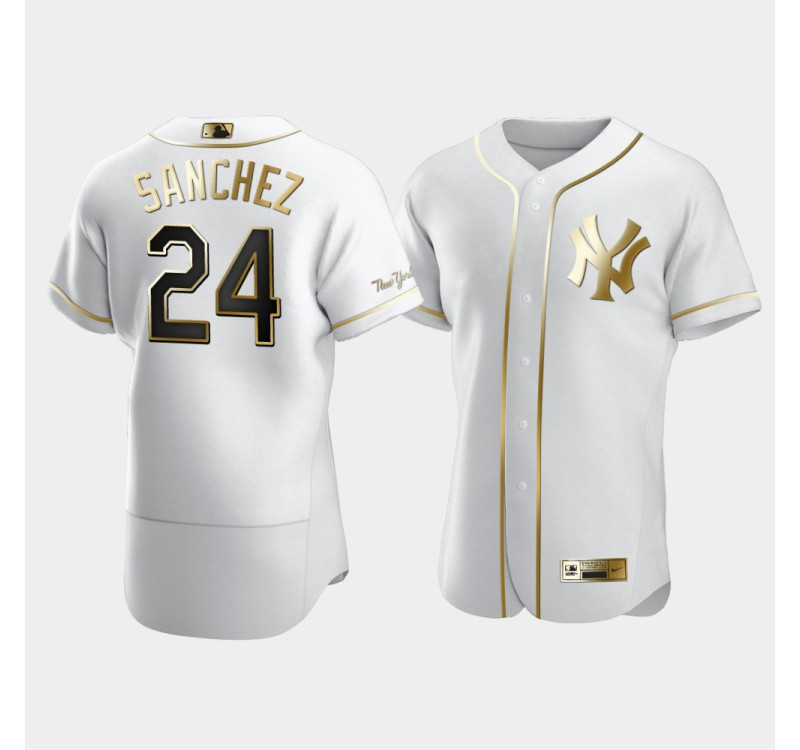 Mens New York Yankees Gary Sanchez #24 White Golden Edition Authentic Jersey