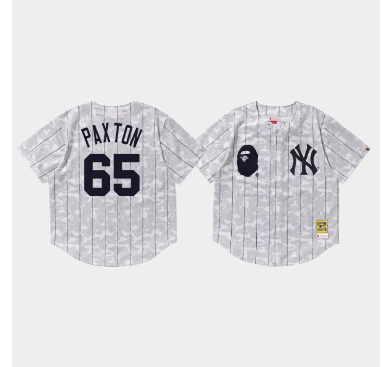 Mens New York Yankees James Paxton #65 White BAPE x Mitchell & Ness Jersey