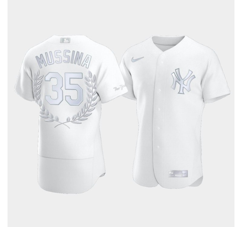 Mens New York Yankees Mike Mussina #35 White Award Collection Hall of Fame Jersey