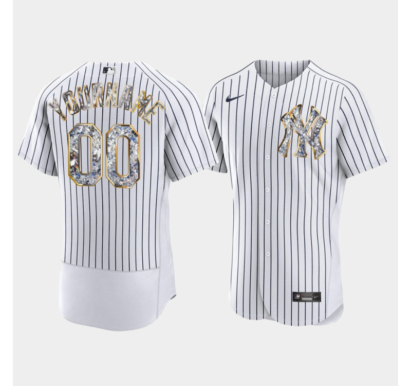 New York Yankees #00 Custom Mens Diamond Edition Jersey - White