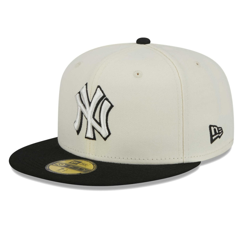 Adult Men's New York Yankees New Era Chrome 59FIFTY Fitted Hat - Stone/Black