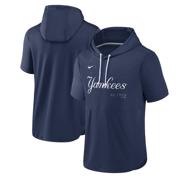 Adult Men's New York Yankees Springer Short Sleeve Team Pullover baseball Hoodie - Navy