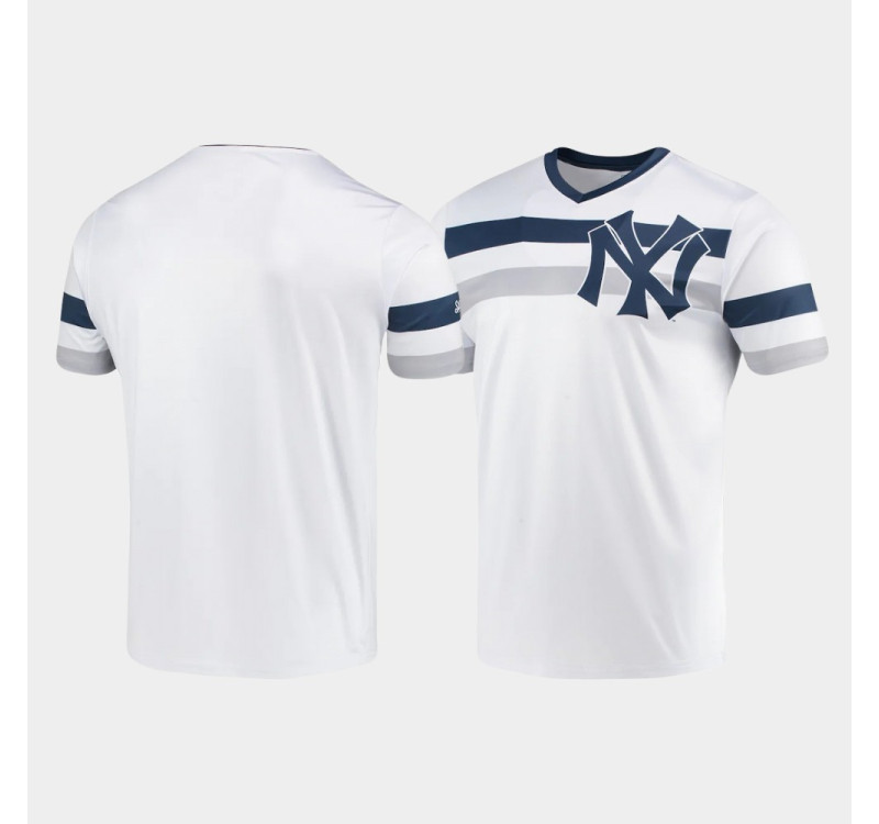 New York Yankees White Cooperstown Collection V-Neck Jersey Mens