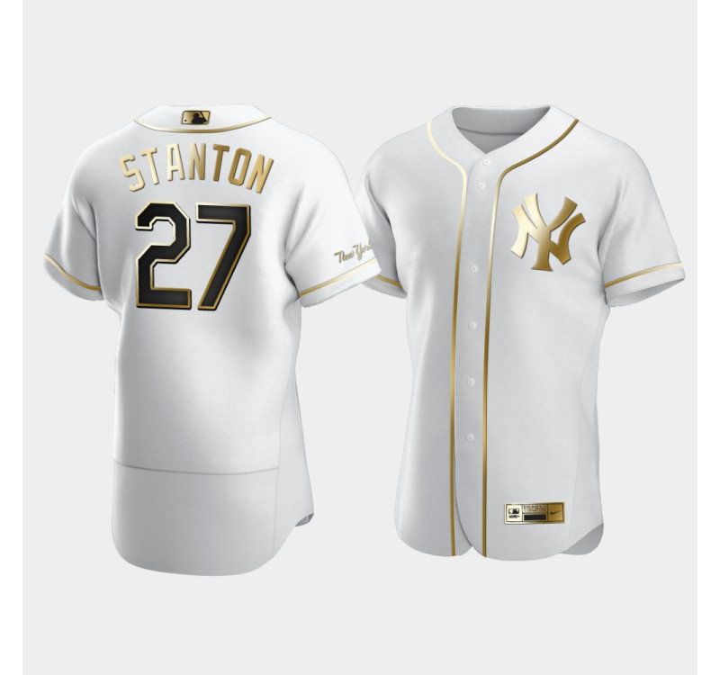Mens New York Yankees Giancarlo Stanton #27 White Golden Edition Authentic Jersey