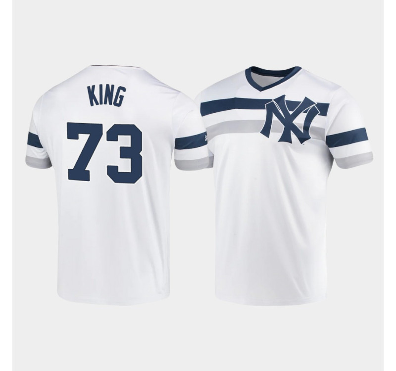 No one will be able to rival your die-hard New York Yankees passion on game day when you've got these fierce team Jersey on These Mens New York Yankees #73 Michael King White Cooperstown Collection V-Neck Jersey allow you the opportunity to experience the same performance that your favorite players do.
