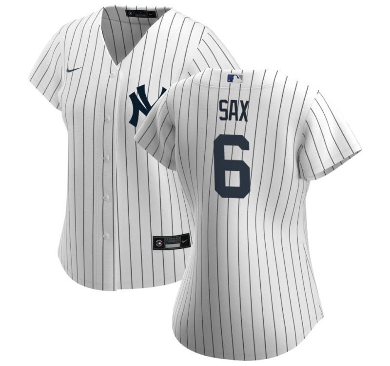 Celebrate the pinstripe legacy with this iconic Steve Sax #6 New York Yankees Home Retired Player Women's Jersey - White Replica. The crisp white fabric adorned with classic navy pinstripes perfectly captures the timeless elegance of Yankees tradition. Featuring the legendary interlocking NY logo prominently displayed across the chest, this jersey transforms you into a walking tribute to baseball's most storied franchise. Whether you're cheering in the Bronx bleachers or watching from home, the moisture-wicking fabric keeps you comfortable while the bold team graphics declare your undying loyalty to the 27-time World Champions. This isn't just apparel - it's a badge of honor for true Yankees faithful.