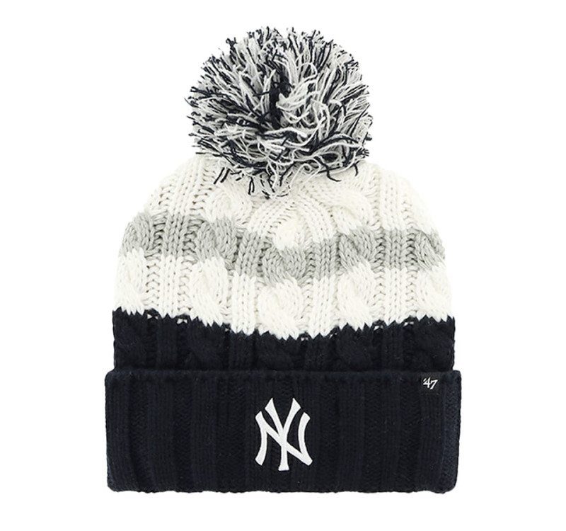 Lending luxurious warmth to cold winter days, this '47 Ashfield hat is the perfect game day accessory. It features a trendy top pom, coordinating stripes, cable-knit design and distinct New York Yankees embroidery for a charming look. A stretchy construction allows for a customized, full-coverage fit.