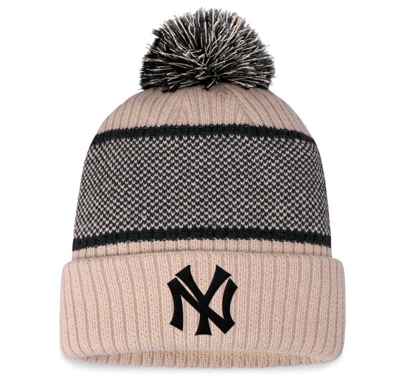 Women's New York Yankees Cuffed Knit Hat with Pom - Natural/Black