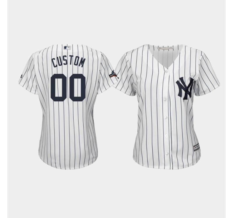 • Womens New York Yankees #00 Custom 2019 Postseason White Official Cool Base Jersey