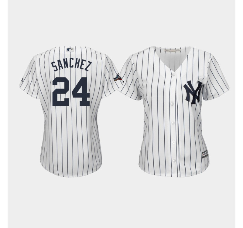 Womens New York Yankees #24 Gary Sanchez 2019 Postseason White Official Cool Base Jersey