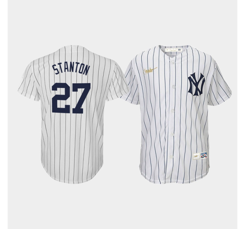 Youth New York Yankees #27 Giancarlo Stanton Cooperstown Collection Home Nike White Jersey