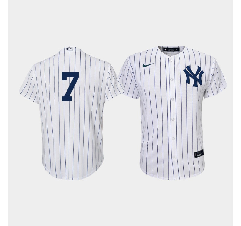 Youth New York Yankees Mickey Mantle #7 White Navy Replica Home Jersey